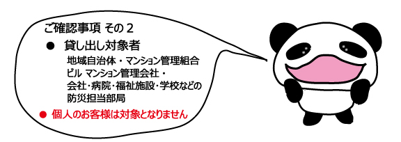 マンション管理組合や 自主防災組織で 防災計画をご検討中のかたは、防災意識を高め、よりよい防災計画を練り上げるために 「おためし貸し出し」を有効にご活用ください!